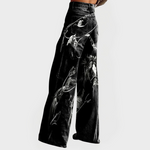 A pair of trousers that combines mystery, strength, and art. The dramatic portrayal of a rider and horse is captured in a bold graphic depiction, creating an impressive look that captivates the eye.
