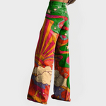 These unique trousers are inspired by the freedom of the 70s and incorporate designs full of energy and imagination. They combine sunsets, clouds, flowers, and stars into a playful and bold ensemble.