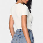 Light and alluring, this bodysuit with a V neckline and short sleeves is the perfect choice for warm days and evening outings. It hugs the body with femininity and accentuates the silhouette with subtle elegance.