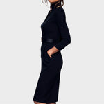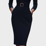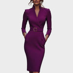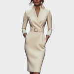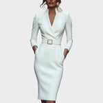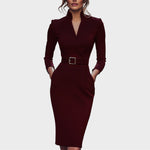 This shift dress combines refined tailoring with a perfect fit for a look that exudes confidence and class. The tailored belt accentuates the figure while the elegant neckline adds a subtle yet striking touch. Ideal for business meetings, dinners, or any occasion where style is a must.