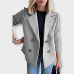 Ready to make a statement in a blazer that feels as effortless as it looks? Our Double-Breasted Knit-Sleeve Blazer combines sleek tailoring with cosy comfort, so you never have to choose between sophistication and ease.