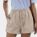 These luxurious shorts bring shine and comfort to every outfit. The satin texture and subtle ring belt create a refined look that stands out, while the elastic waistband hugs the body comfortably.