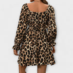 Make an impression with this elegant dress featuring a striking leopard print, which combines a sophisticated square neckline with a feminine A-line skirt.