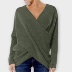 ✔️ Chic V-neck design: The modern crossed V-neck and asymmetrical hem add a unique touch to this sweater.
