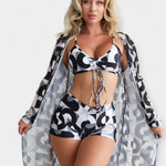 This modern set combines comfort, style, and elegance for complete summer looks. The high-waisted bikini hugs the silhouette, the top with a bow accentuates the bust, while the lightweight beach cover-up adds finesse and versatility.