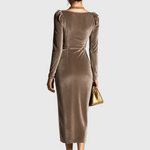 Step into the world of elegance with Grace's elegant midi dress — designed to highlight your natural charm while providing complete comfort. Its exquisite design and flattering shape make it perfect for evening events, romantic dinners, or special occasions where elegance and confidence meet in perfect harmony.