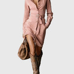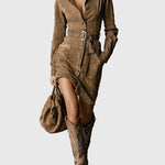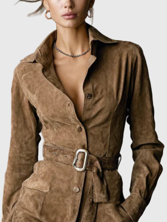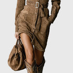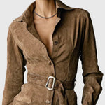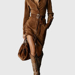 Experience exceptional elegance and comfort with the Jéssara dress, designed to highlight your silhouette and elevate any autumn and winter outfit. The luxurious soft suede and refined details make it the perfect choice for both casual outings and elegant gatherings.