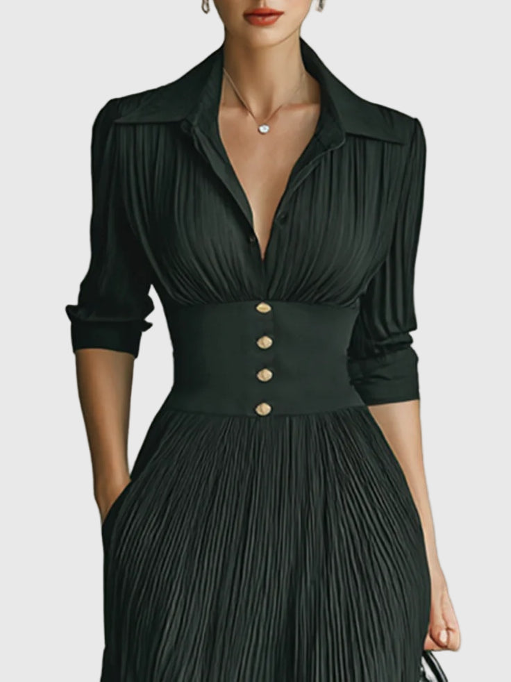 Pleated midi dress with a perfectly fitted waist – Elegance for every occasion
