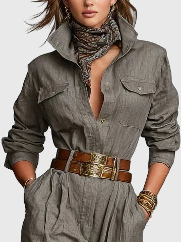 ✔️ Classic collar and long sleeves – Polished, refined look.