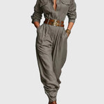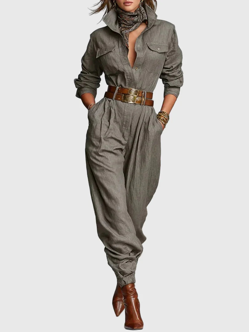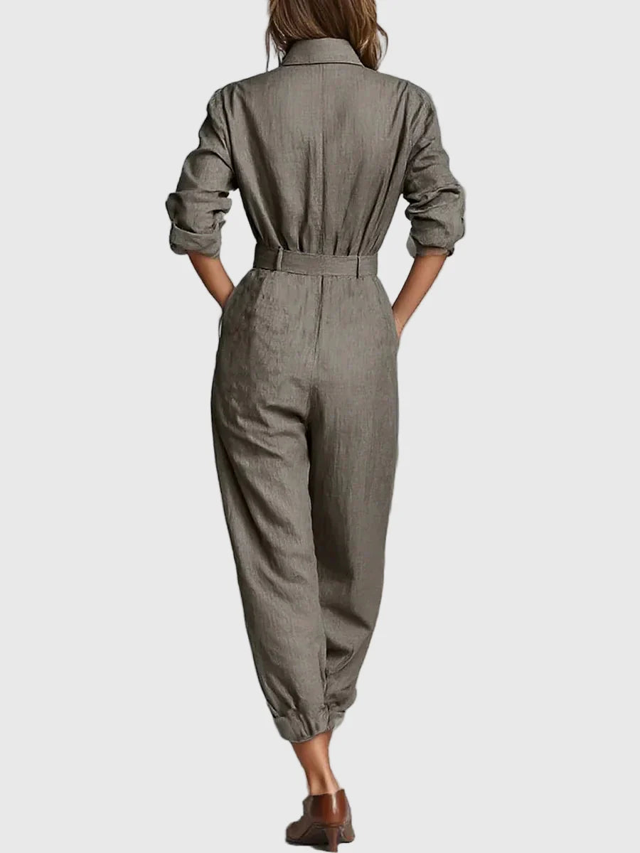 The jumpsuit Megan | Summer Cotton combines breathable lightness with timeless elegance. Designed with a flared, figure-enhancing silhouette and a classic collar, it brings elevated simplicity to every moment — from daytime engagements to brunch with friends. Light and soft with an elegant drape, it offers comfort that moves with you while accentuating your natural shape. Style with sandals or loafers for chic, effortless elegance throughout the seasons.
