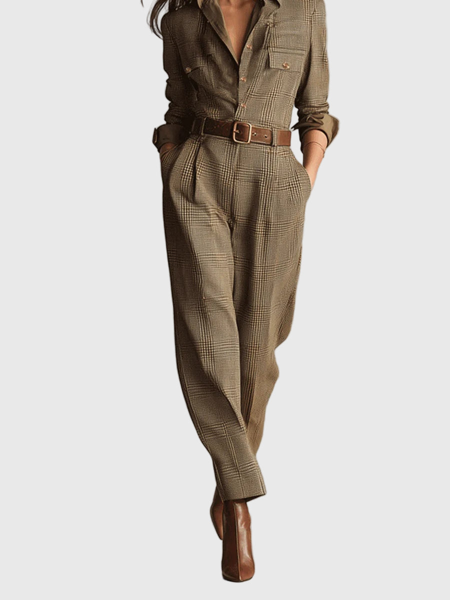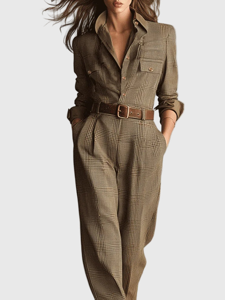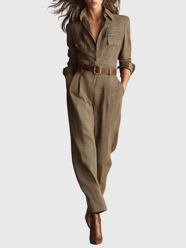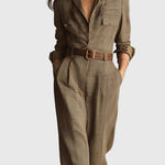 This sophisticated plain jumpsuit effortlessly combines classic elegance with everyday functionality. Its fitted silhouette and waist belt create a flattering shape that accentuates your figure and boosts your confidence, making it ideal for both smart-casual occasions and formal outings.
