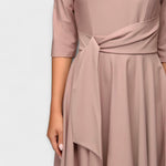 Add an elegant touch to your wardrobe with this beautiful midi dress. The design combines a flattering silhouette with a modern twist. The waist belt accentuates the figure and ensures a perfect fit. With three-quarter length sleeves and a flowing skirt, this dress is ideal for festive occasions, elegant parties, or even for everyday wear when you want a touch of sophistication.