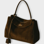 Elevate every outfit with this sophisticated suede handbag. Designed with a timeless silhouette and refined details, it offers both luxury and practicality in one beautiful piece. The structured shape keeps your essentials organised, while the soft suede finish adds a touch of understated elegance.
